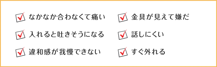 以下にご紹介する入れ歯で、上記の問題を軽減できます。